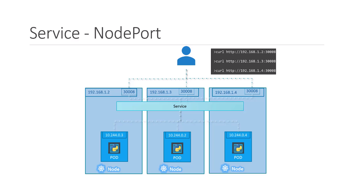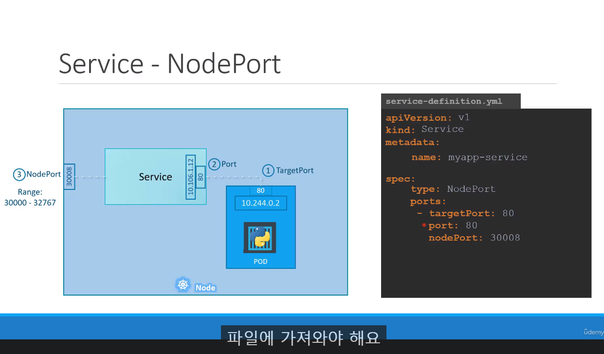 - Node의 POD에 클라이언트 요청을 실행정인 POD의 port로 요청하도록 한다.