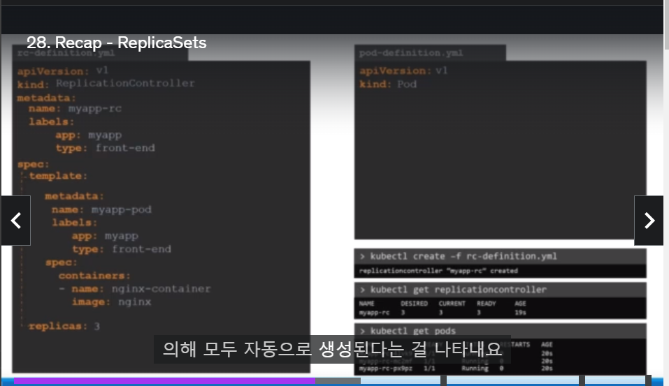 - Replication Controller는 구식 기술이기 때문에 Replica Set 으로 대체되고 있다.