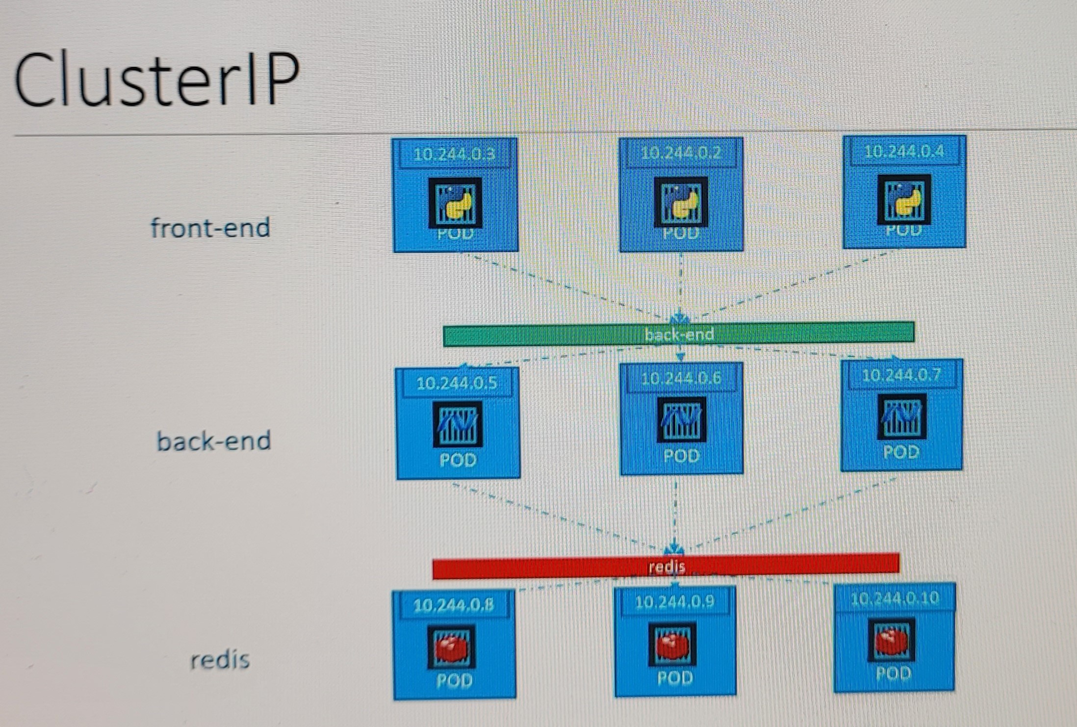 - 각각의 서비스는 클러스터 내부에서 IP와 그에 할당된 이름을 가지고 있다. -> 다른 포드가 서비스에 접근하는데 사용하는 이름