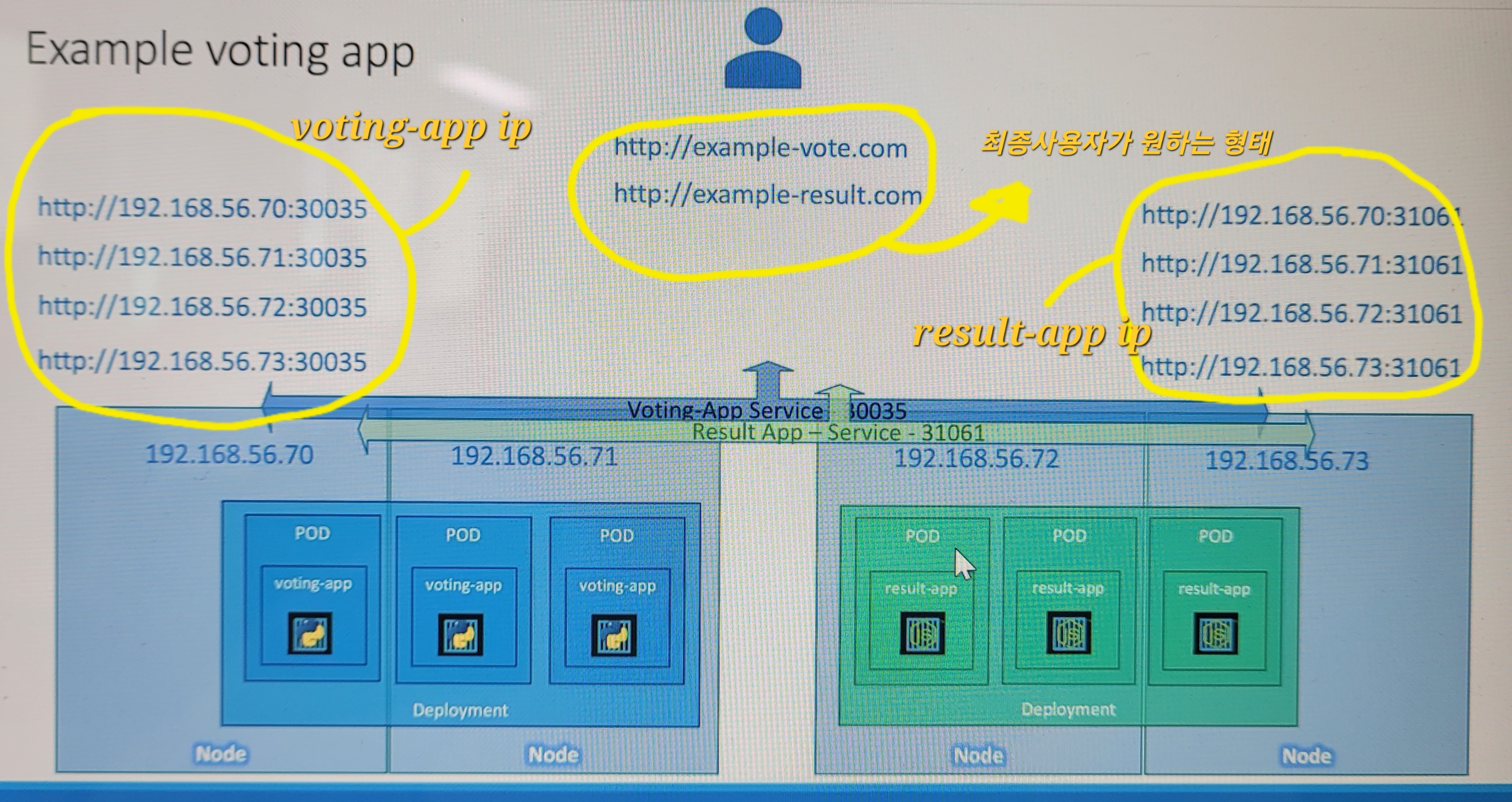 - 사용자와 Voting-App Service 사이에 Load Balancer 를 구성해 기본 노드로 트래픽을 routing 한다.