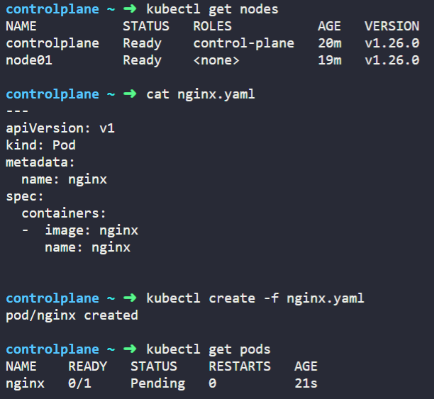 - node를 모니터하고 Scheduling 할 Scheduler가 없다면 POD는 계속 Pending 상태이다. -> 직접 Node에 포드를 할당한다.