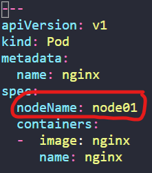- Pod 설정파일 내부에서 nodeName을 작성해 줌으로써 노드를 지정해준다.